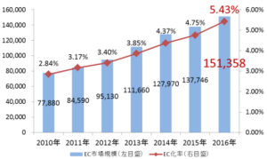 経済産業省の最新の調査結果より引用:平成 28 年度 我が国におけるデータ駆動型社会に係る基盤整備(電子商取引に関する市場調査)